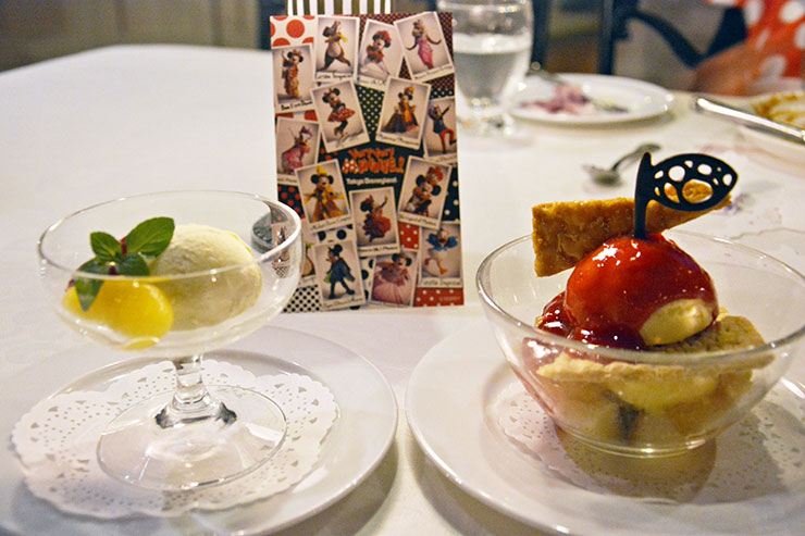 デザートは、ミニーマウスの得意料理であるアップルパイをイメージしたサンデーです。