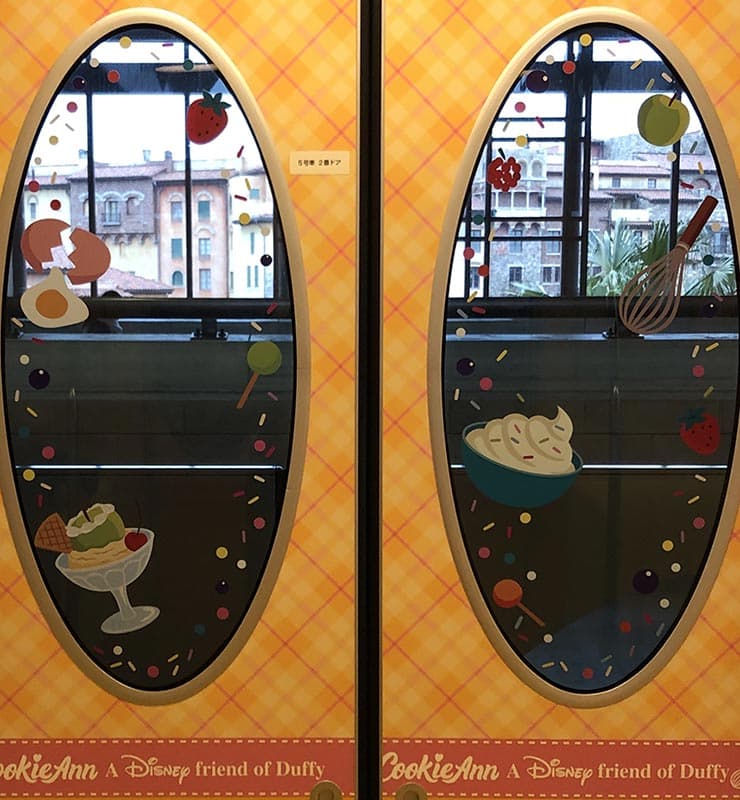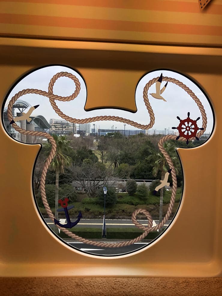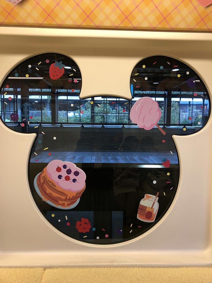 窓には、ダッフィーがイメージされた海にまつわるイラストが描かれています。
