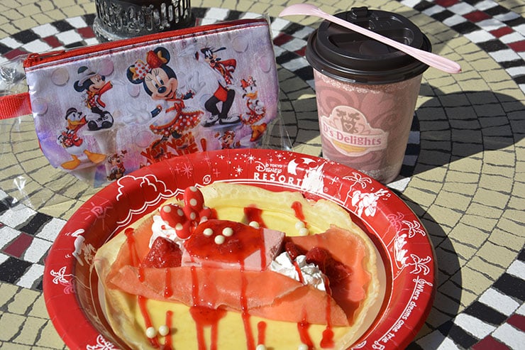 こちらのクレープには、プラス700円でスーベニアポーチをつけることができます。