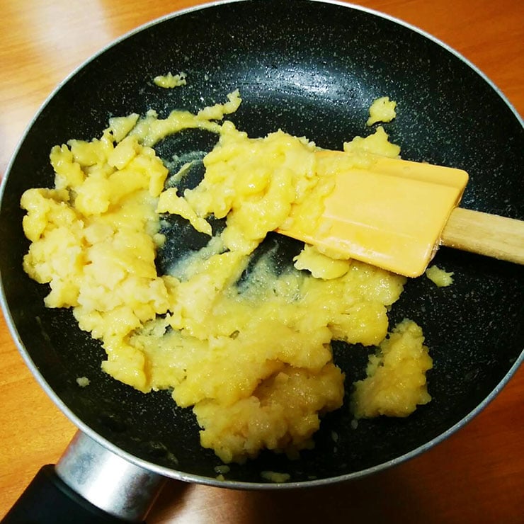 ③ 生地が固まったら、火から下ろして5~7分休ませます