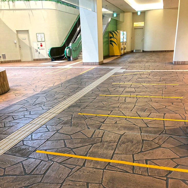 その後、エスカレーターへ続く導線にもずっと黄色いライン。