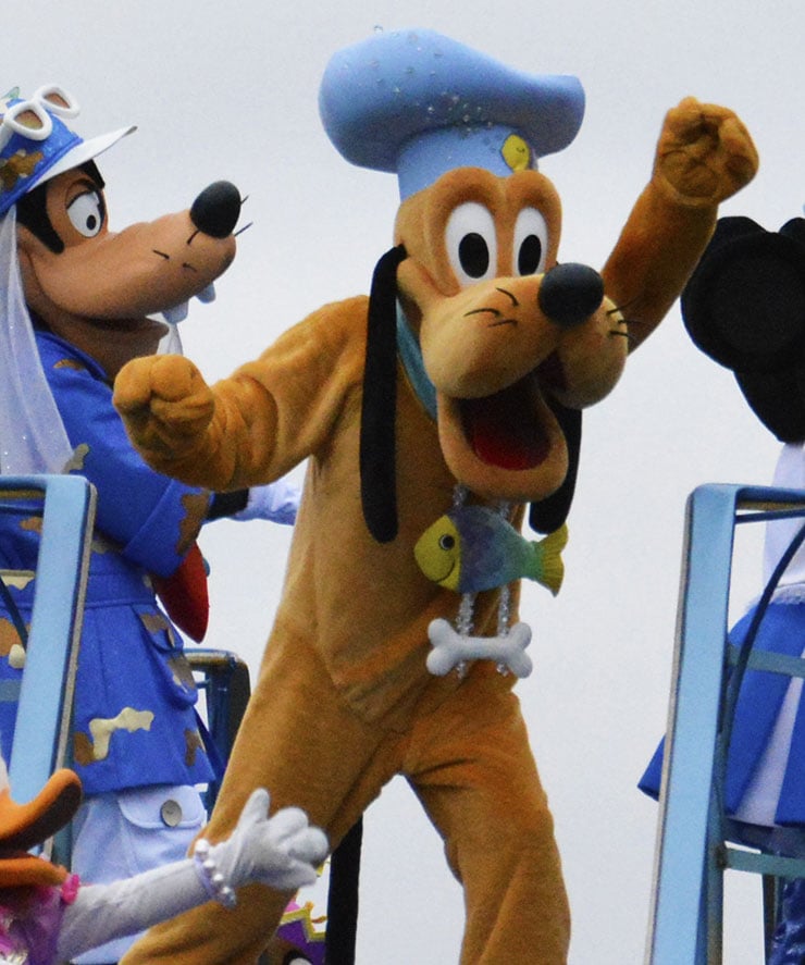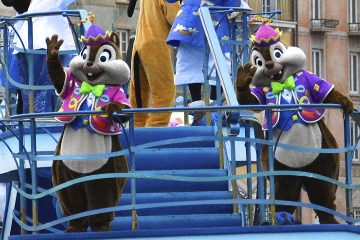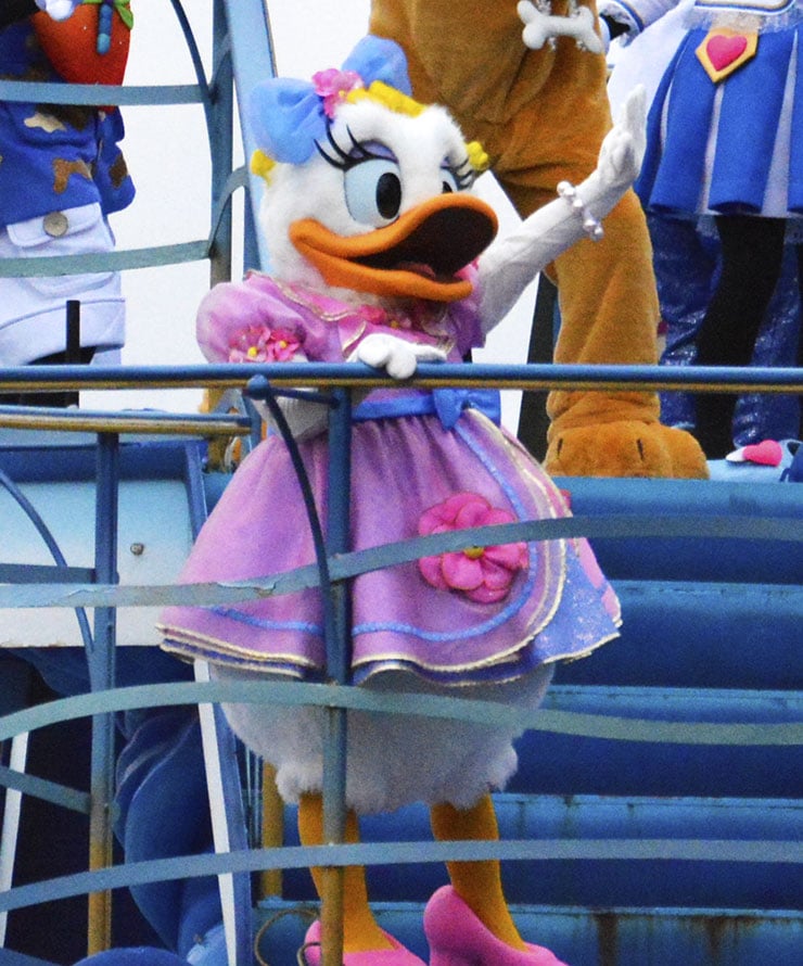 キャラクター達は、ディズニーシーの5周年でドックサイドステージにて公演された「オーバー・ザ・ウェイブ」のコスチュームで登場します。