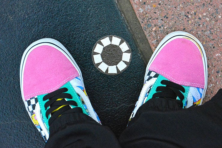 観覧場所には、足下に黄色い四角や白いお花のマークの印がついていますので、その場所を確保するようにしましょう!