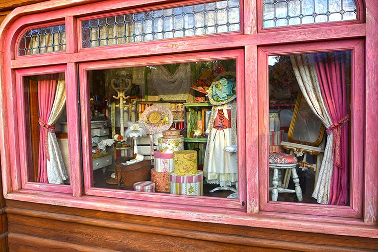 現在は出口となっている「ボンジュールギフト」は、村一番の技術を持つ仕立て屋さんが経営する帽子屋さんです。