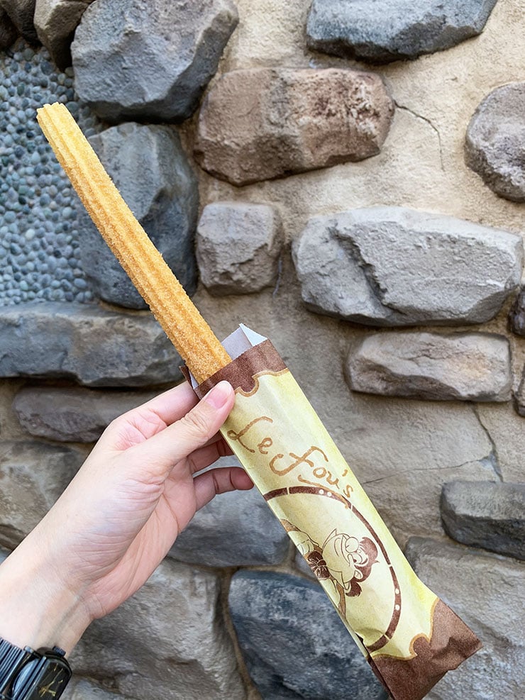 こちらでは、パーク初登場となるアップルキャラメル味のチュロスが販売されています。