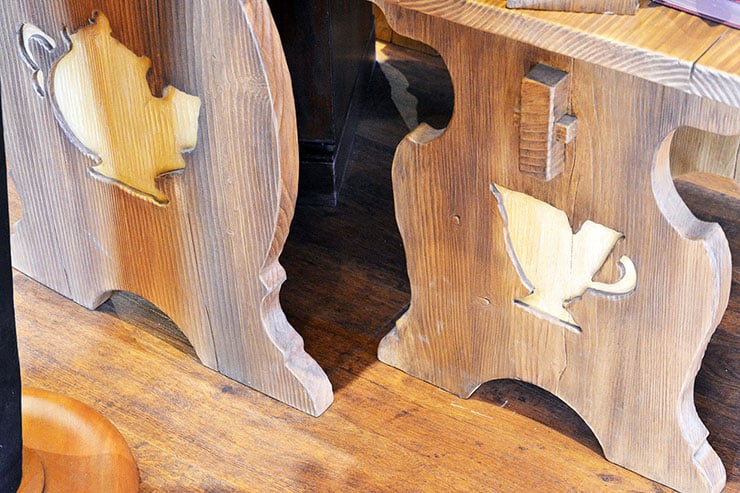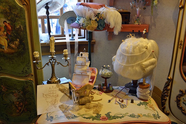 暖炉の左右に飾られたシルエット画、こちらは『美女と野獣』にも登場する帽子屋さんと、帽子を試着する時にカツラまでとってしまう女性のものです。