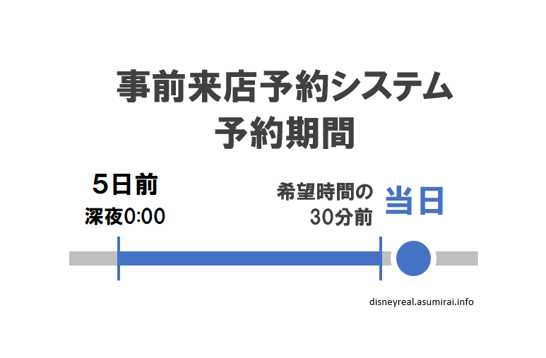 予約は入園日の5日前の深夜0:00から可能で、4人まで入店できます。
