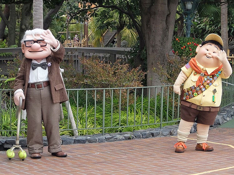 前に5組ほど並んでいて、『カールじいさんの空飛ぶ家』のカールじいさんとラッセルがいました。