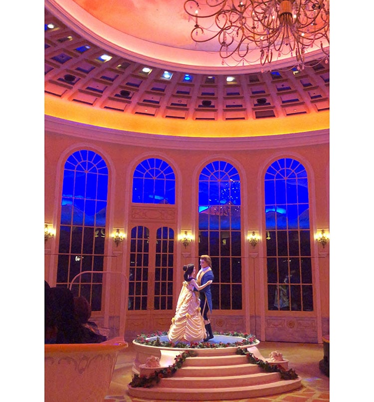 ステンドグラスが動きだし、映画のオープニングシーンが再現されると、ベルと野獣も登場し、ベルが初めて野獣の城を訪れるところから、ものがたりは始まります。