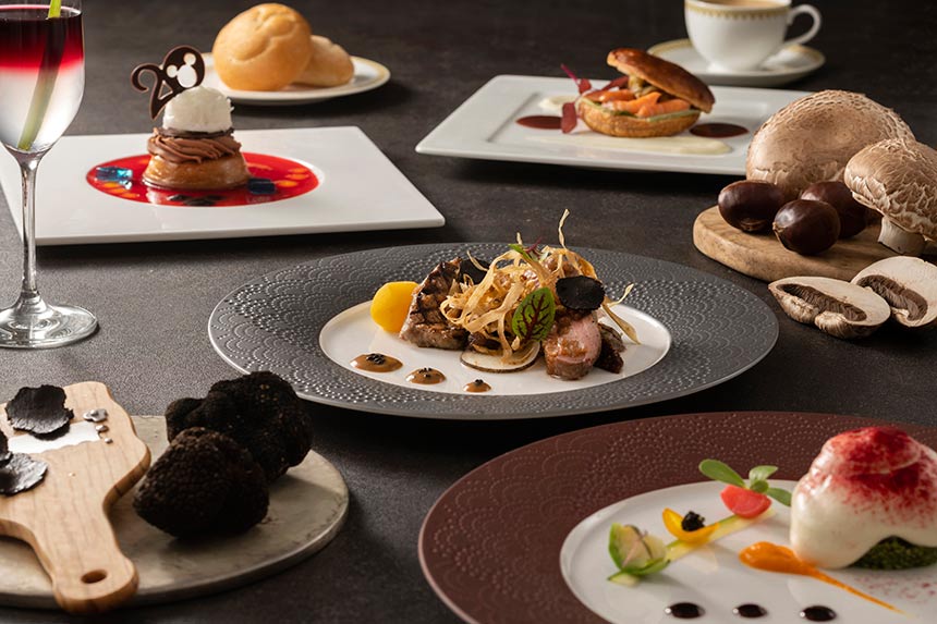 ディズニーリゾート内で1番高級なレストラン”である「マゼランズ」のスペシャルコースは、世界最大珍味の1つとして知られる芳醇な香りのトリュフと、大きな見た目が特徴の肉厚マッシュルーム、ポータベッラ、この2つのきのこをメインの肉料理に合わせました。