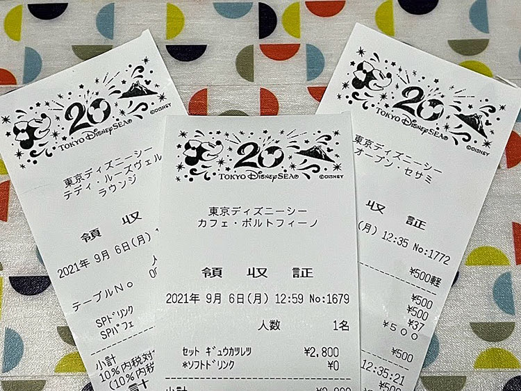 ミッキーバージョンもあるらしいのですが、この日もらったレシートは全てミニーちゃんでした。