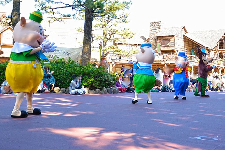 その後、徒歩で3匹の子豚とビッグ・バッド・ウルフがやってきます。