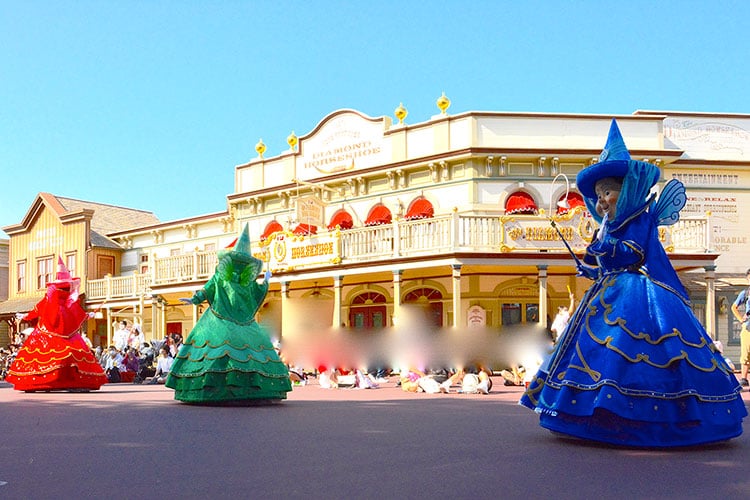 プリンセスフロートの後ろはメリーウェザー、フィーナ、フローラが続きます。