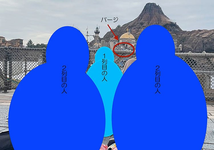 そう思ってやや後方の3列目をとっていたのですが、そうなるとやはり前の人が気になるし、バージもあまり見えませんでした。