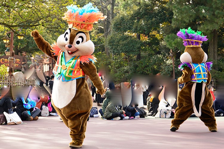 さて、そんな懐かしい「ミニー・オー!ミニー」の音楽が流れ、先頭はチップとデールが歩いて登場します!