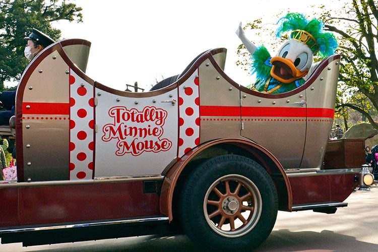 続いて、トータリー・ミニーマウス仕様の車に乗ったドナルドダック。