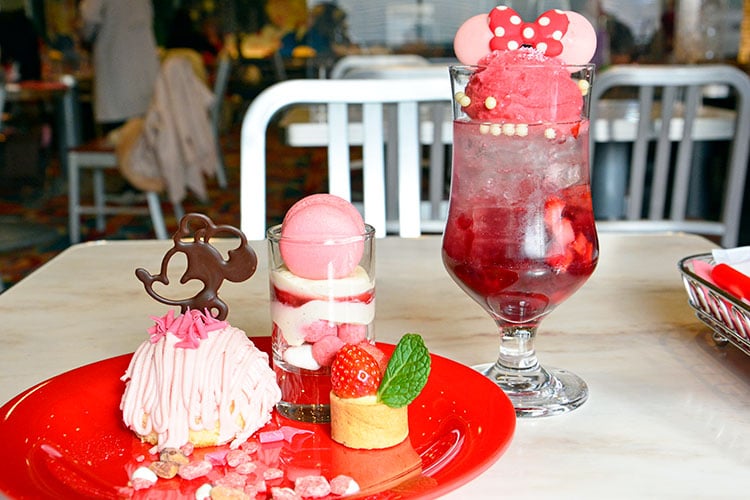 ○ デザートプレート 苺のモンブラン、苺のカスタードタルトレット、レモンマスカルポーネクリームとマカロン ○ ミックスベリーソーダフロート
