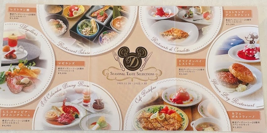 現在ディズニーシーでは20周年をお祝いして、パーク内の対象のレストランがそれぞれの特色を活かしたメニューで競演する「シーズナルテイストセレクションズ」が開催されています!
