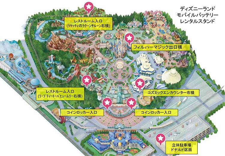「ChargeSPOT」のアプリ内、またはディズニーリゾート公式アプリで確認することができますが、少しわかりづらいので一覧を作ってみました。