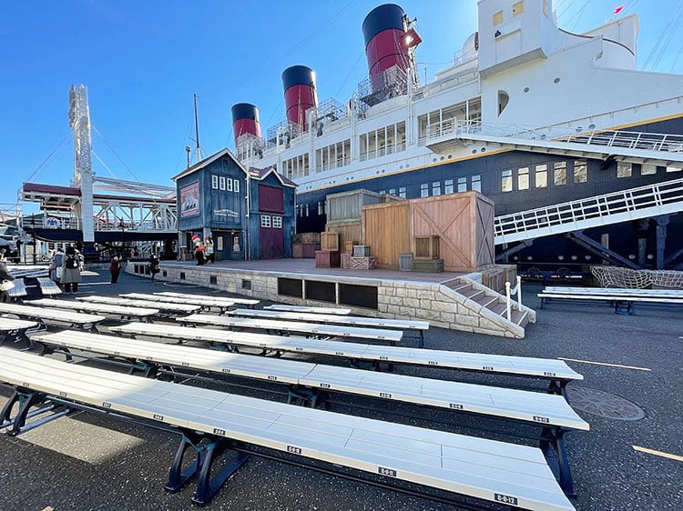それぞれコロナ禍で臨時のキャラクターグリーティングとして使われていた場所ですが、このたび「ジャンボリミッキー!レッツ・ダンス!」の公演場所となりました。