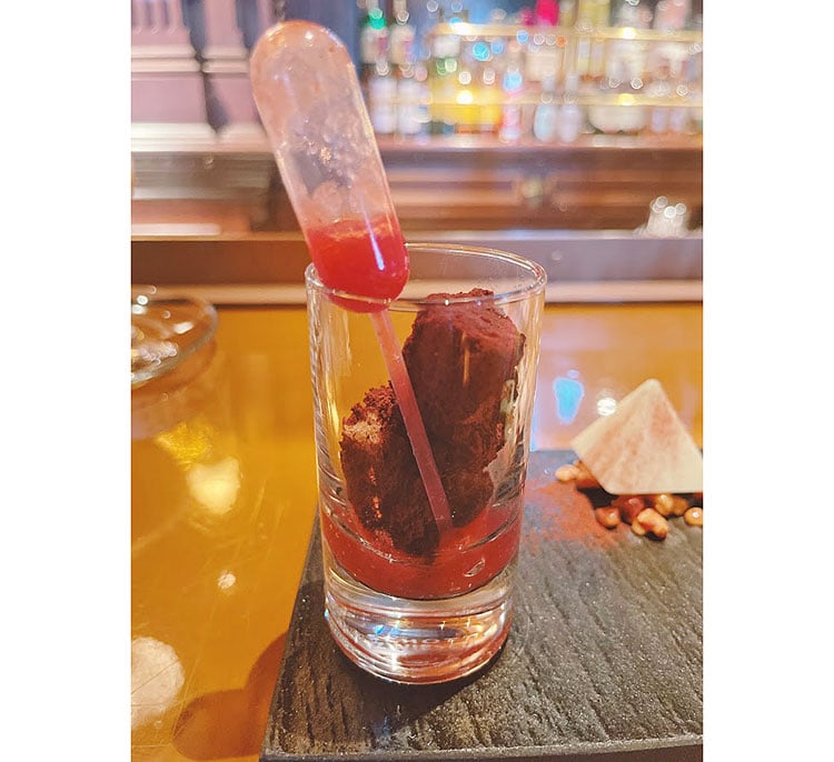 スポイトにはストロベリーソースが入っていて、マグマをあらわしています。