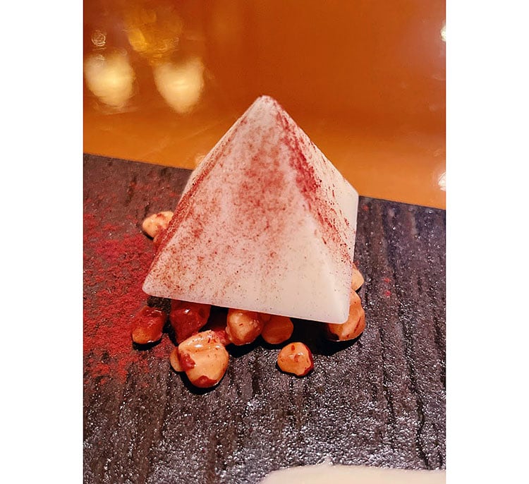 三角のチョコレートにココアパウダーをまぶして、ピラミッドの遺跡をイメージしています。
