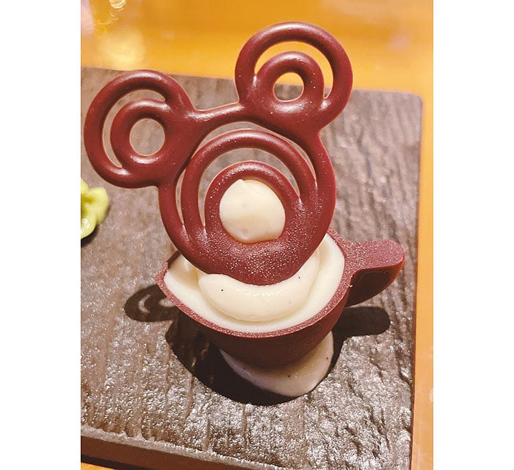 カプチーノ型のチョコでイタリア、ミッキーのチョコでミッキー広場をイメージしています。