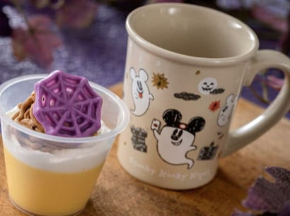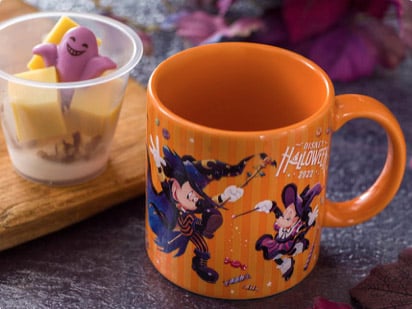 ミッキーと仲間たちがパークにハロウィーンの魔法をかけるポップなデザインのスーベニアカップは、メイプルクリームを付けていただくスウィートポテトです。