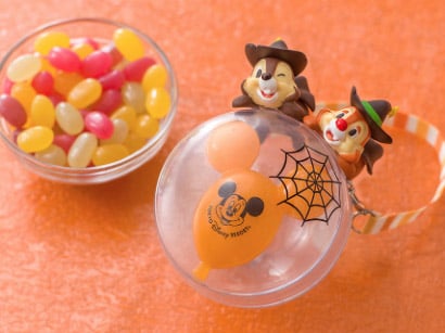 ハロウィーンの装いをしたチップとデールがバルーンの上にのる姿が可愛いミニスナックケースは、中身がグミキャンディーとカラフルチョコレートの2種類あります。