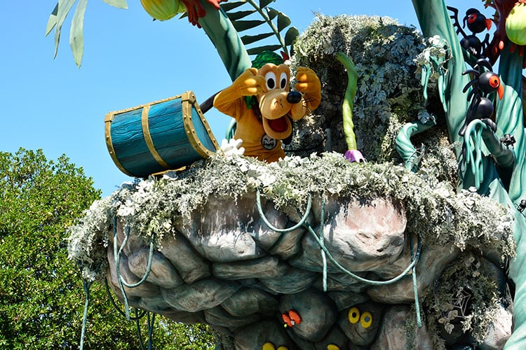 アドベンチャーランドをイメージした2台目のフロートには、前方上部にフーフィーが乗っています。