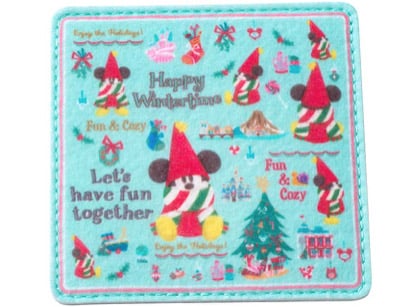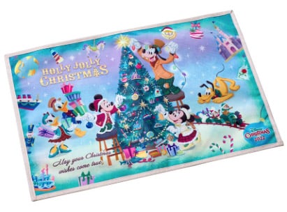 ミッキーマウスと仲間たちがクリスマスツリーの準備を楽しんでいる様子と、総柄のリバーシブルで、裏表楽しめるランチョンマットです。
