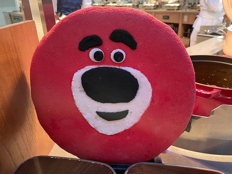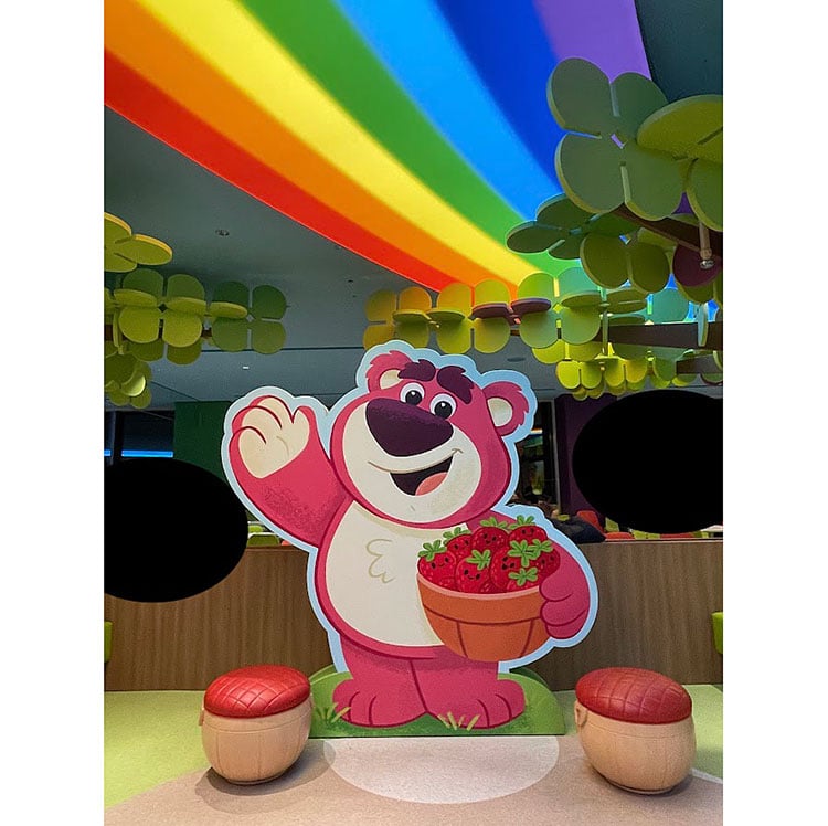 『トイ・ストーリー3』に登場するピンクのくまのぬいぐるみ、ロッツォがモチーフになっています。