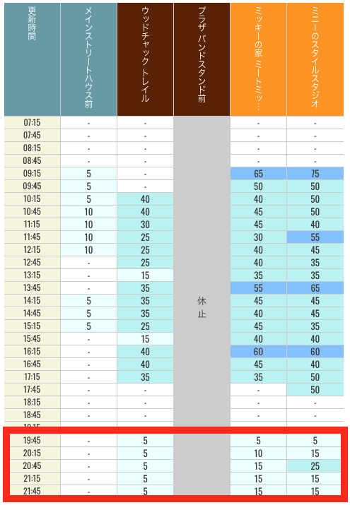 ディズニーリアルので実際の待ち時間を見て見ましょう。