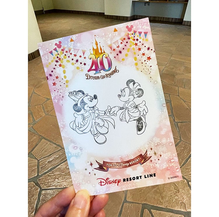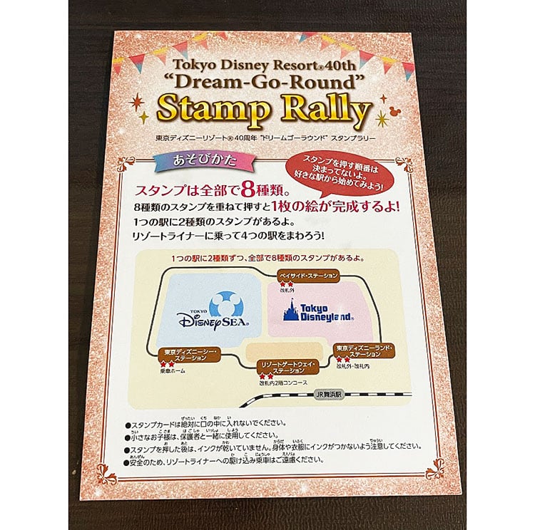 最初スタンプラリーと聞いて、ミッキーマウスやミニーマウスなど、それぞれのキャラクターのスタンプがあるのかな?と思いましたが、リゾラのスタンプラリーは8種類のスタンプを重ねて押すことで、1枚の絵が完成するというものでした!