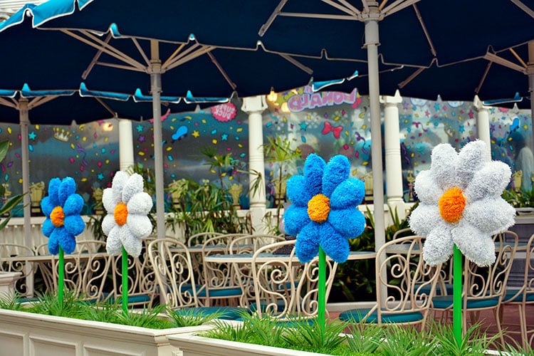 テラス沿いにはドナルドダックカラーのお花がずらり♪