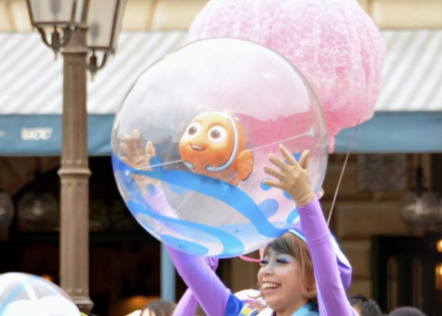 ボール(泡)の中に入ったキャラ達を運んでいき、ニモとマーリンを再会させます。