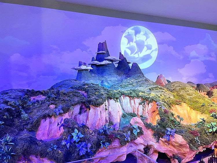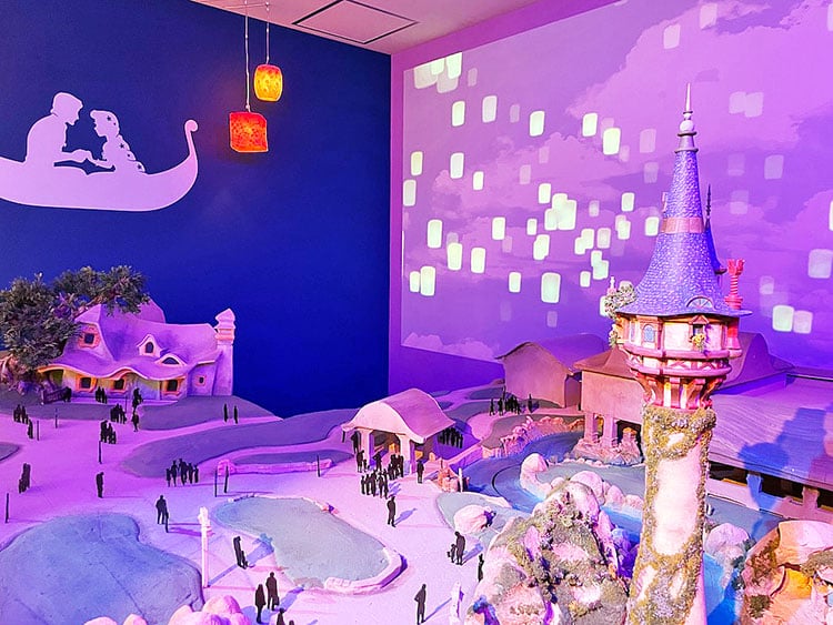 ラプンツェルエリアの模型は、夜になるとランタンが浮かび上がります♪