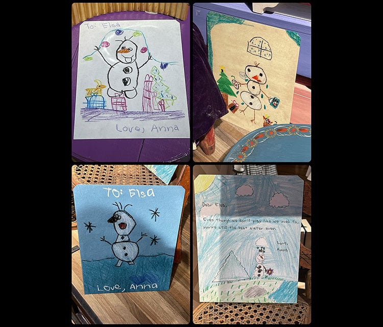 中でもアナがエルサに書いたであろう手紙や絵は涙無くしては見られない・・・(涙)