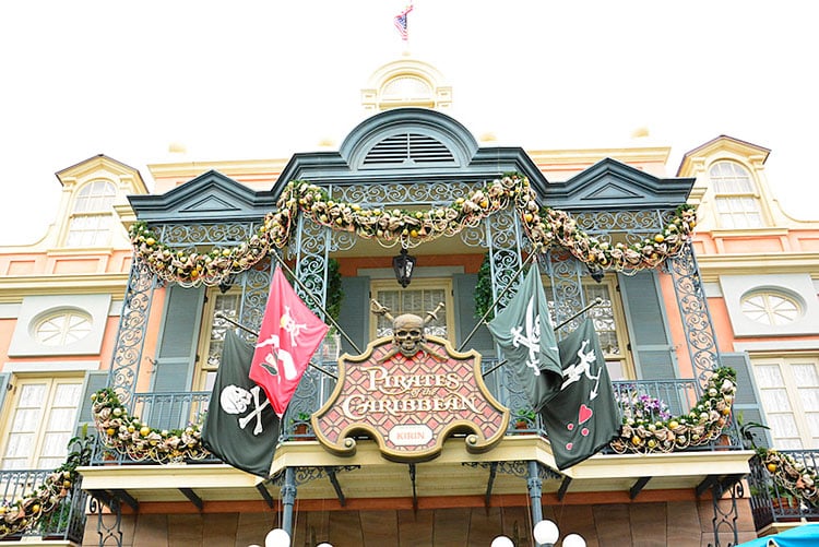 カリブの海賊も、入り口に豪華なクリスマスの装飾がありました。