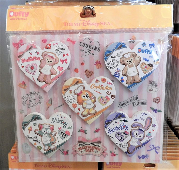 ワッフル、ダッフィー、シェリーメイ、ジェラトーニ、ステラルー、クッキーアンの6種類です。