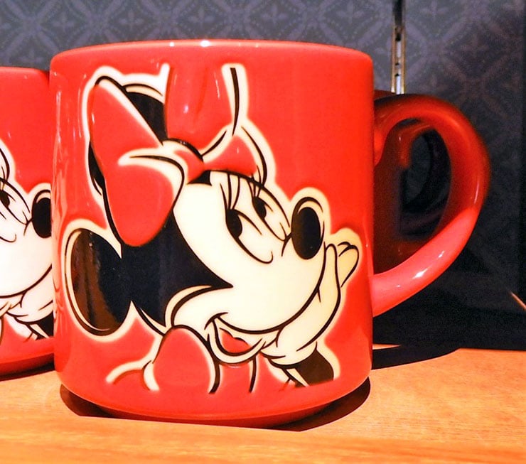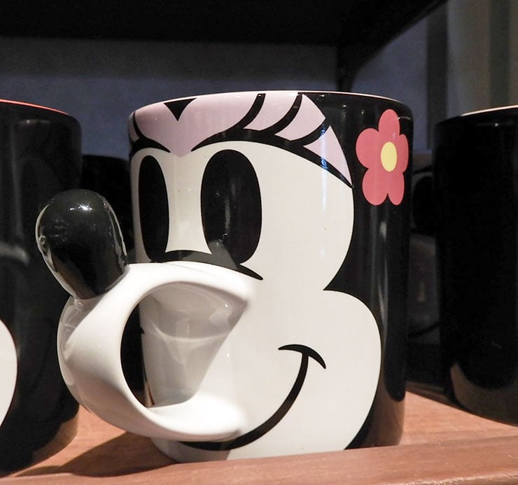 ミニーのお顔をモチーフにしたマグカップ。